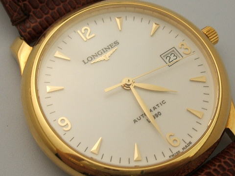K18のロンジン裏スケルトンの時計です。
