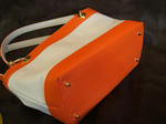 オレンジのスムースレザーとホワイトのシュリンクレザーのミニバッグです。